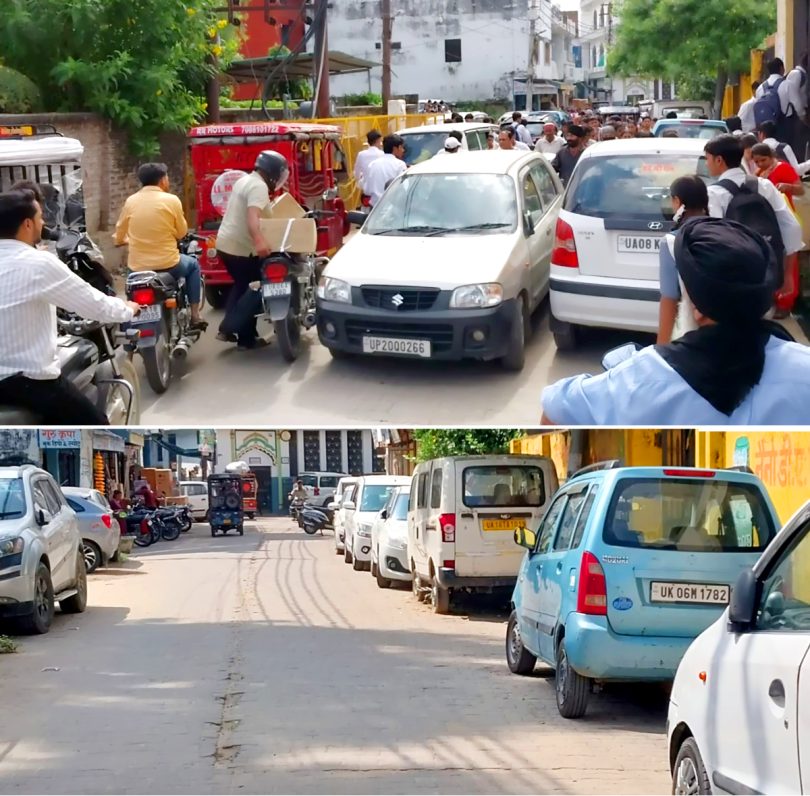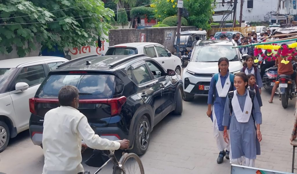 जसपुर में पंडित पूर्णानंद तिवारी इंटर कॉलेज मार्ग वना कार पार्किग का अडडा